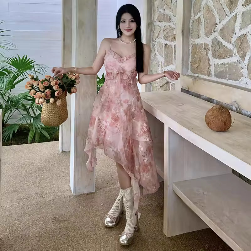 Le design de jupe féerique avec ourlet irrégulier crée du mouvement et un effet fluide, donnant à la robe une allure aérienne et gracieuse.