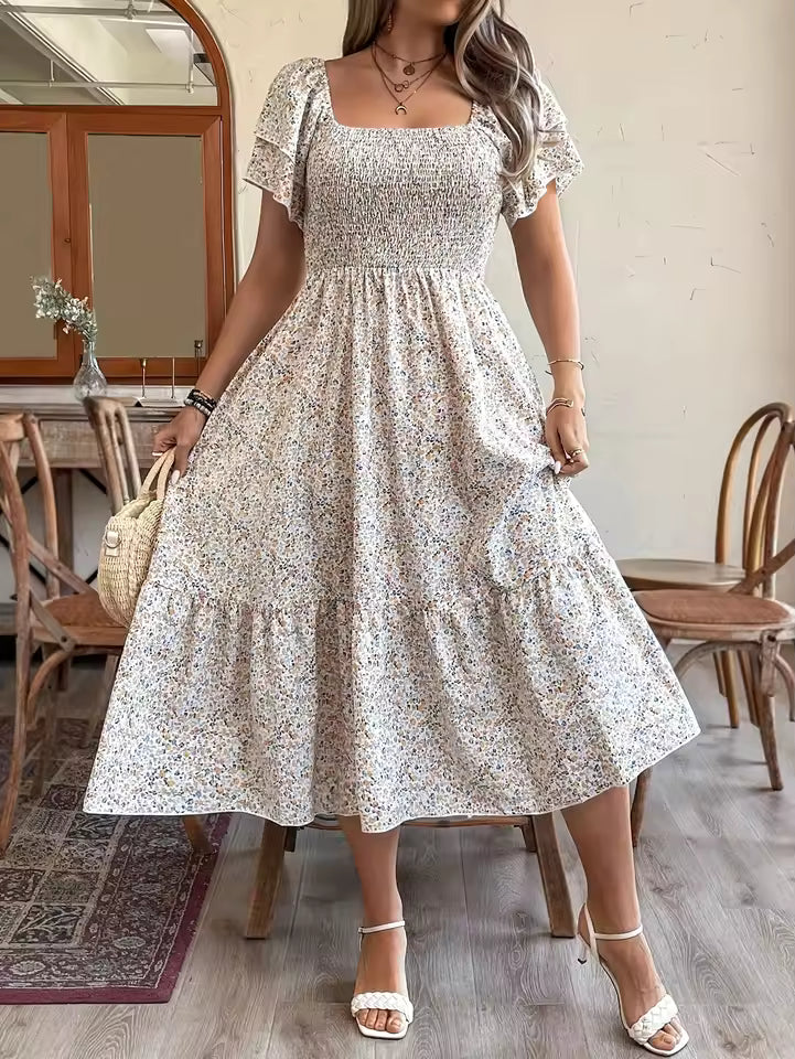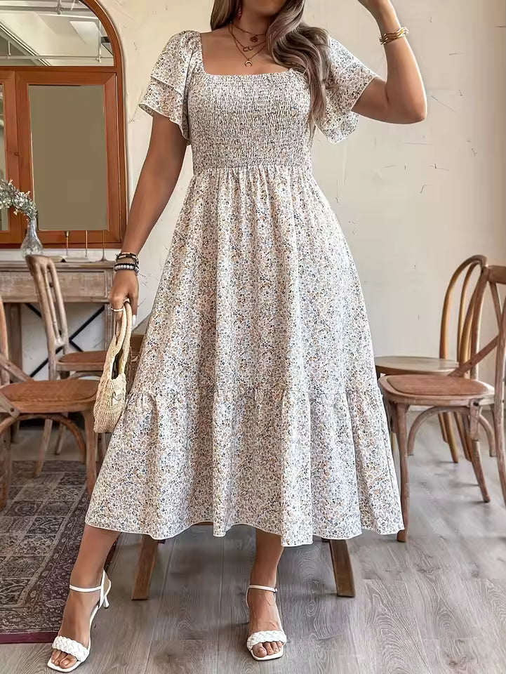 Son imprimé floral romantique et ses manches délicates font de cette robe le choix idéal pour les sorties estivales, les vacances, les promenades ou les occasions décontractées avec une touche raffinée.